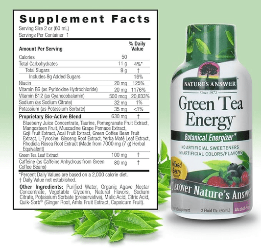 Té verde + Cafeína + Vitaminas del Complejo B de Nature's Answer | Shot energético diseñado para potenciar la energía de manera natural | Bebida de 60ml Sabor Bayas Mixtas