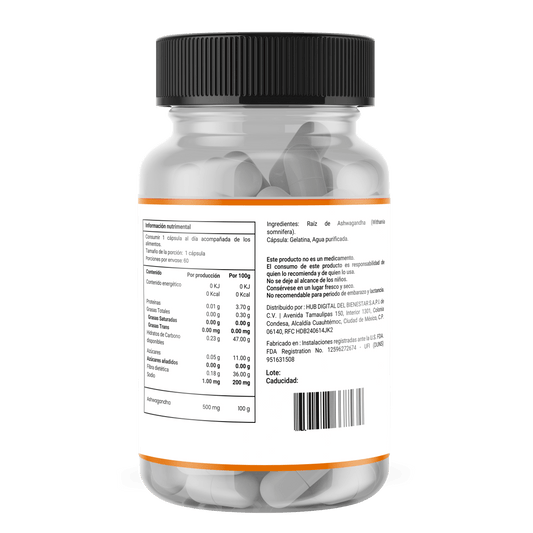 Ashwagandha 0.7 g Regresa de WU Nutrition | Ayuda a reducir el estrés y la ansiedad, contribuyendo al descanso| 120 cápsulas vegetales