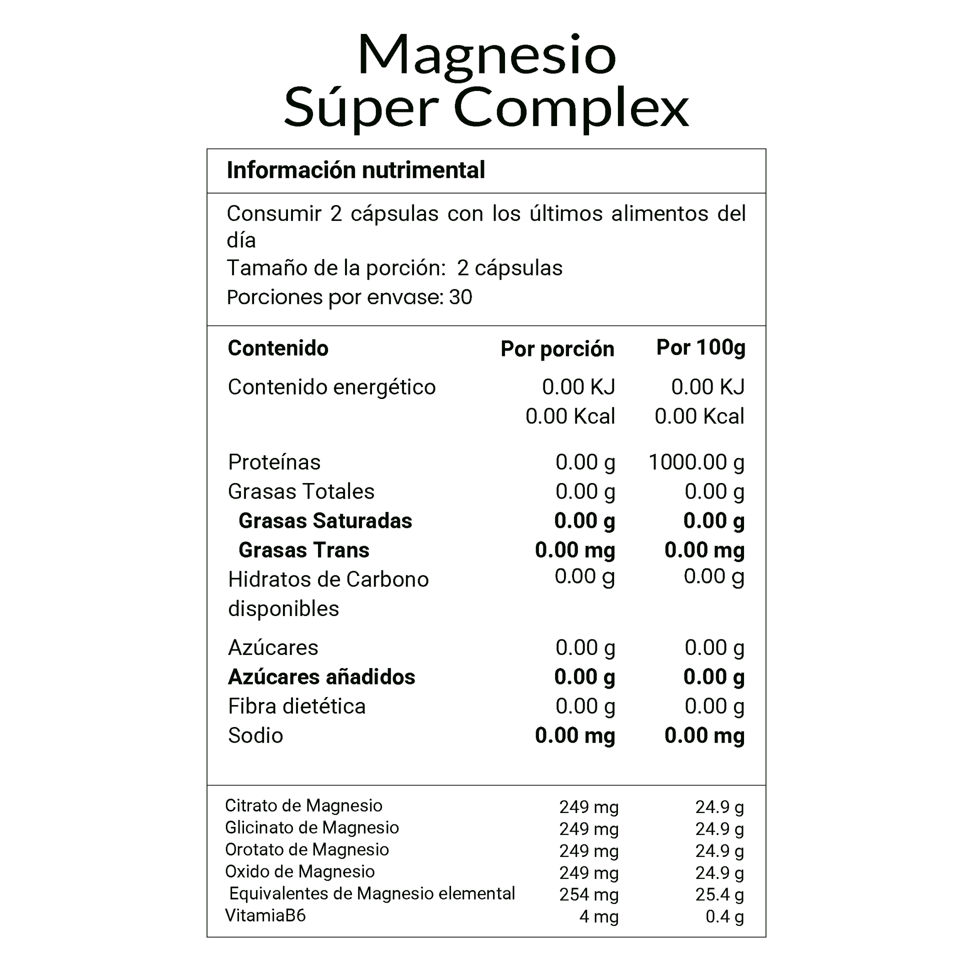 Magnesio (citrato, glicinato, orotato y óxido) (Mezcla Super Complex) |