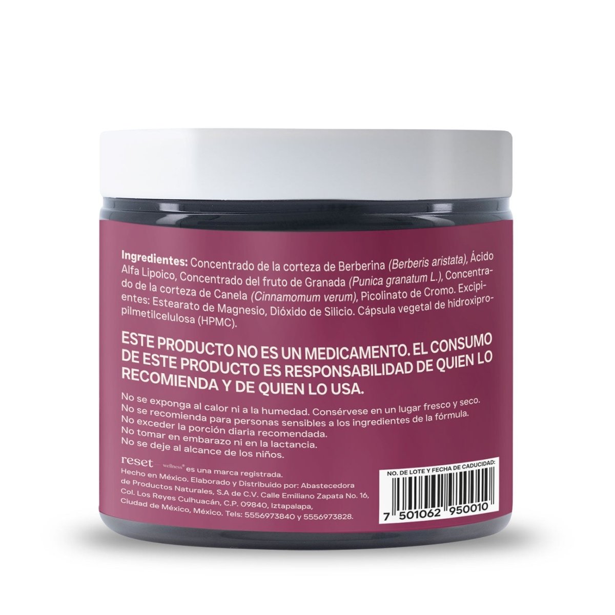Berberina, ácido alfa lipoico, cromo, canela y granada de Reset | Apoyo Metabólico | 90 Cápsulas