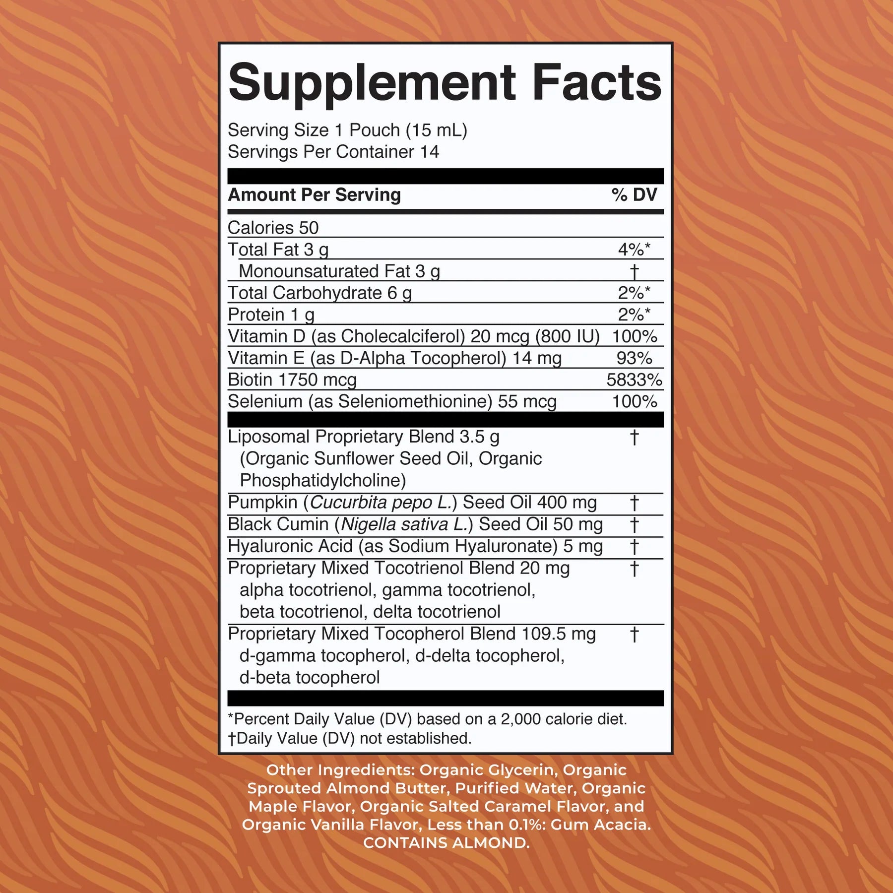 Biotina, Ácido hialuronico, Selenio, Vitamina D - Mezcla patentada liposomal 15ml por sobre de Mary Ruth's | Diseñado para nutrir el cabello, la piel y apoyar el sistema inmunológico | 14 Sobres de 15ml c/u