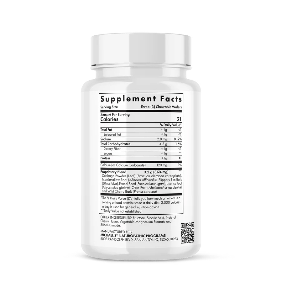 Calcio, Raíz de Malvavisco, Corteza de Cerezo Silvestre de Michael's Health | Apoya la digestión después de las comidas | 90 masticables veganos Sabor Cereza