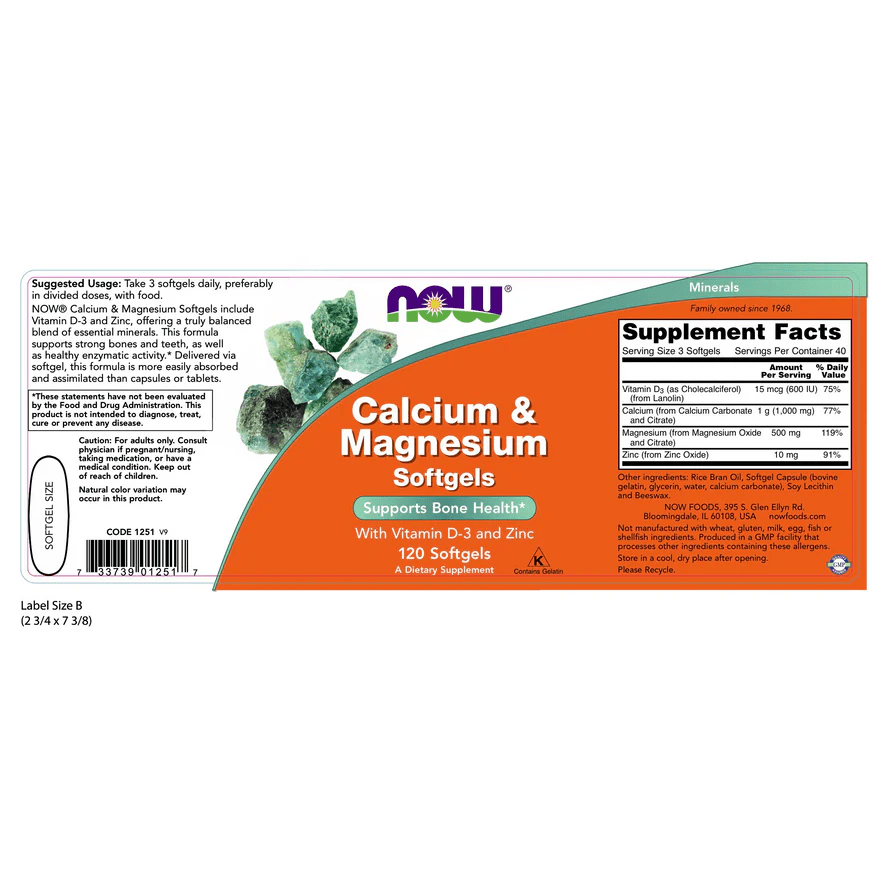 Calcio y Magnesio con Vitamina D-3 y Zinc de NOW Foods | Soporte para la Salud Ósea y Mejor Absorción | 120 Cápsulas Blandas
