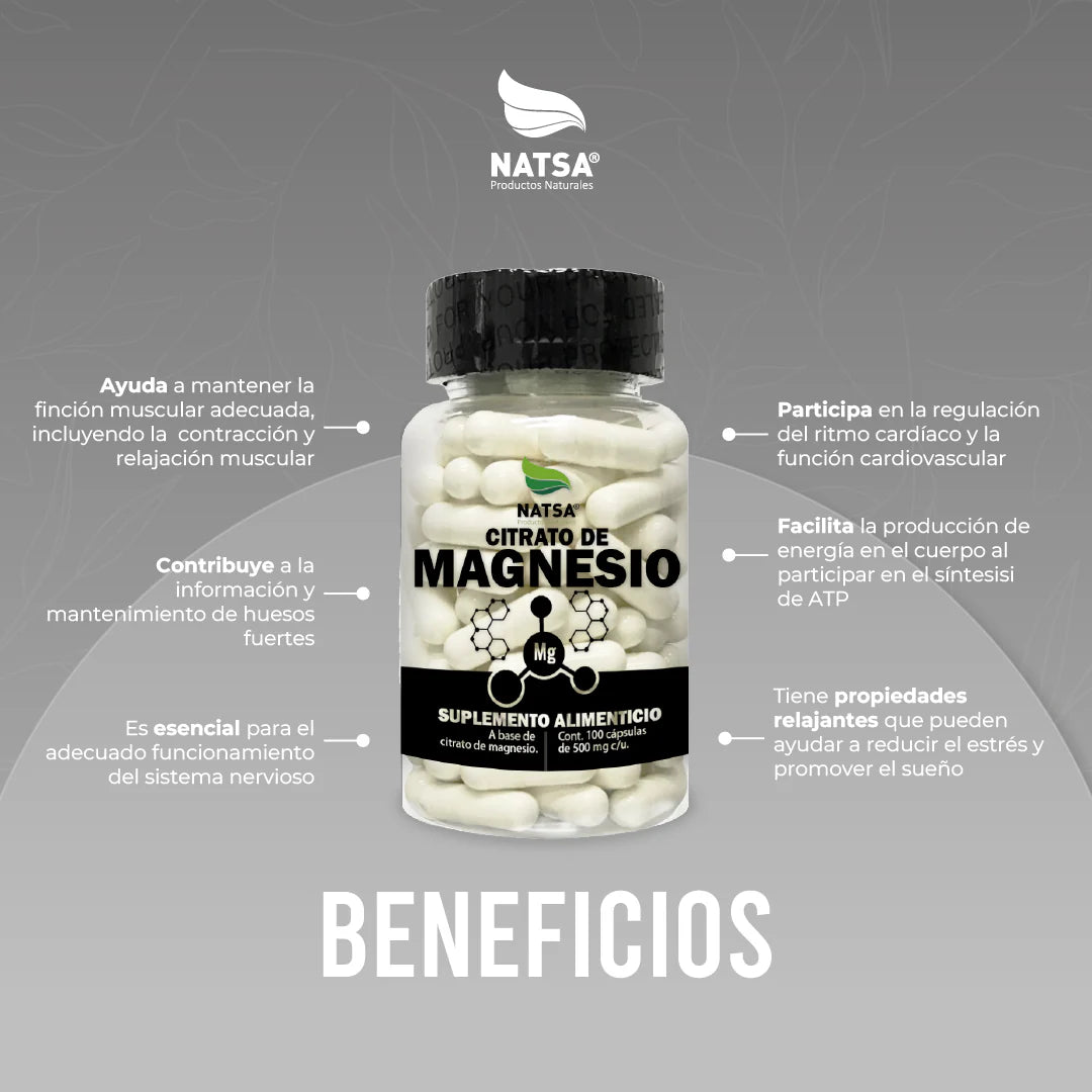 Citrato de magnesio 1000mg por porción de Natsa | Contribuye en la Función Muscular y de los Huesos | 100 cápsulas vegetales