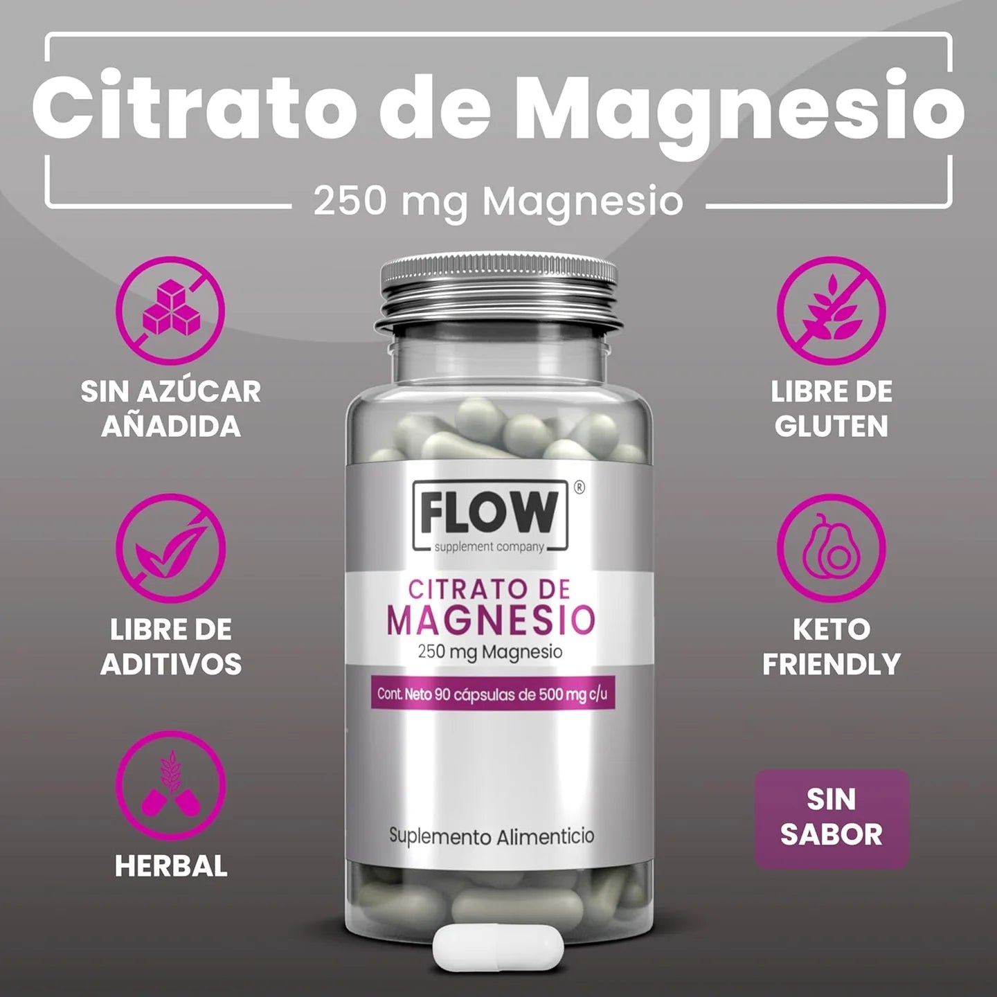 Citrato de Magnesio 250mg de Flow Supplements, por porción 1500mg | Apoyo de la función y fortalecimiento óseo y muscular | 90 cápsulas vegetales