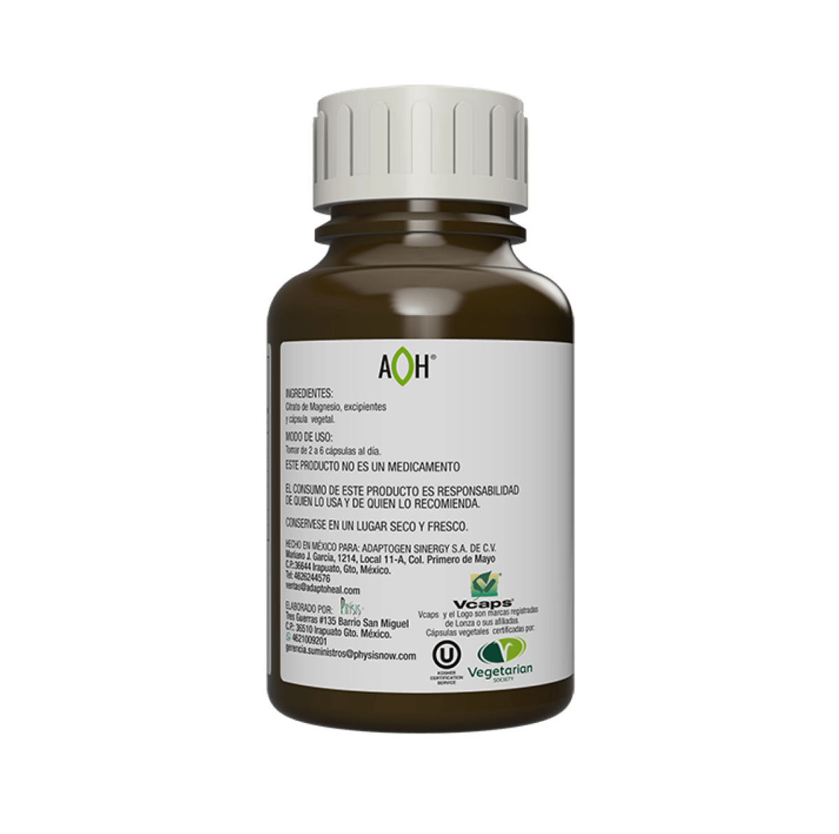 Citrato de Magnesio 500mg de Adapto Heal | Promueve la relajación muscular - Ayuda a reducir calambres y tensiones | 150 Cápsulas Vegetales