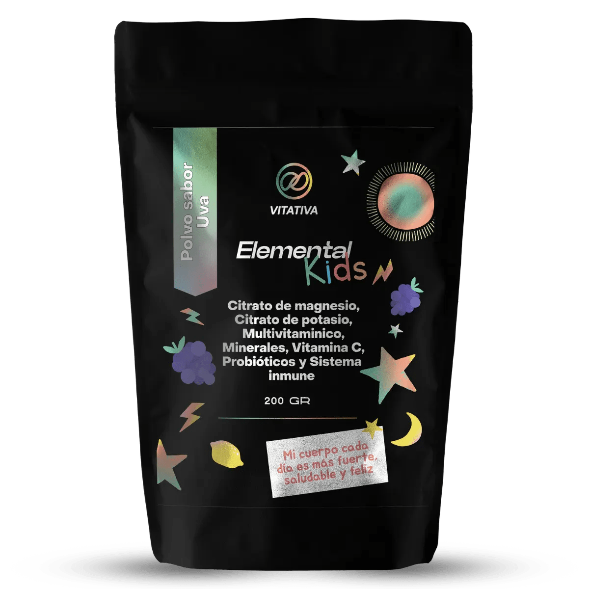 Citrato de Magnesio y Potasio, Multivitaminas y Minerales con Probióticos de Vitativa Elemental Kids - Nutrición infantil | Apoyo Inmunológico | Presentación de 200g de diferentes sabores