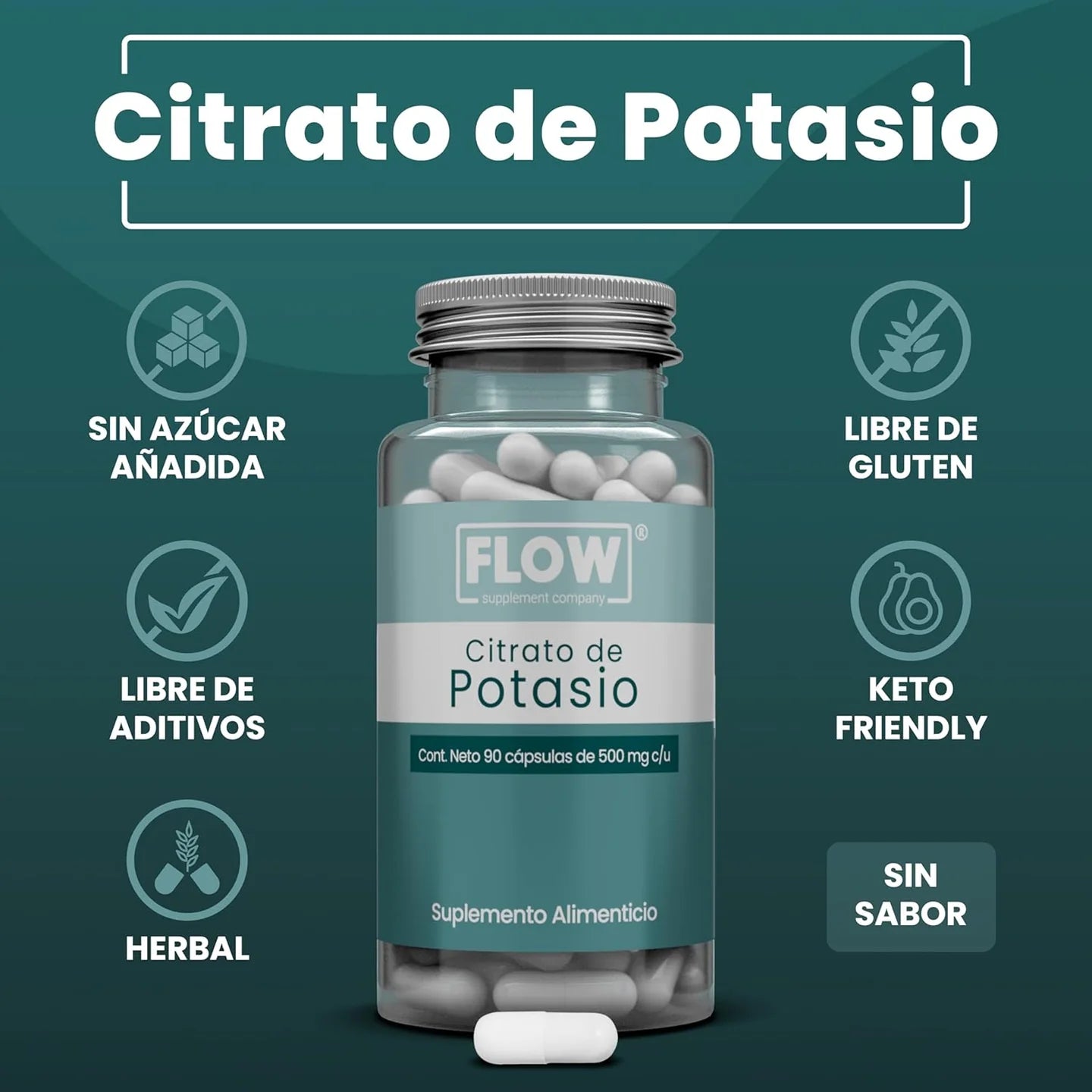 Citrato de Potasio + Proteína de soya + Citrato de Magnesio 1000mg por porción de Flow Supplements | Apoya la función renal y muscular, apoyando la contracción y relajación adecuadas de los músculos | 90 cápsulas vegetales
