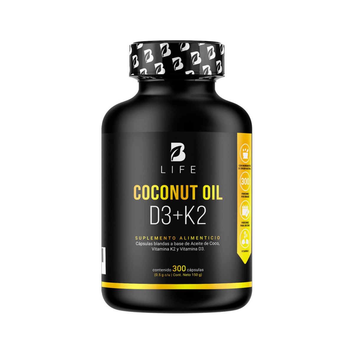 Aceite de Coco + Vitaminas D3 y K2 | B-Life | Apoyo Cardiovascular | 300 cápsulas