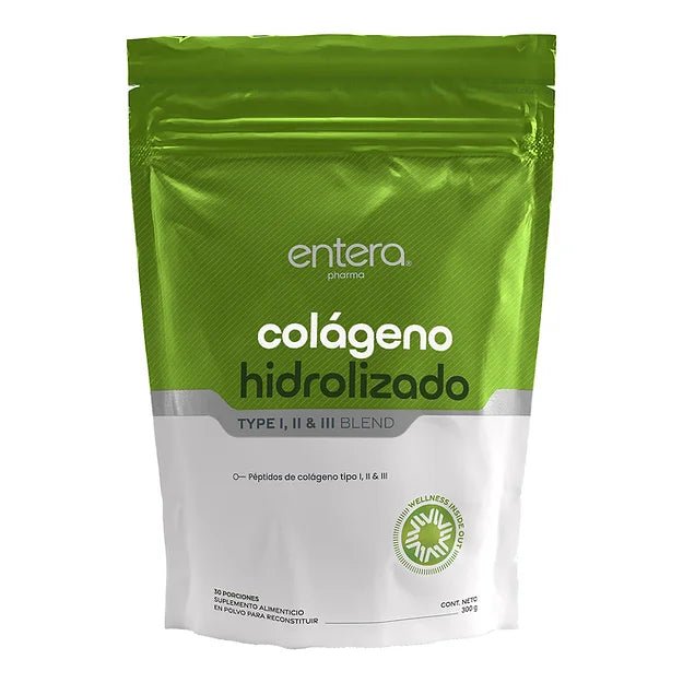 El colágeno hidrolizado tipo I, II y III de Entera es un suplemento en polvo formulado para apoyar la salud estructural del cuerpo. Su contenido de péptidos bioactivos lo hace ideal para fortalecer tejidos, articulaciones y piel.