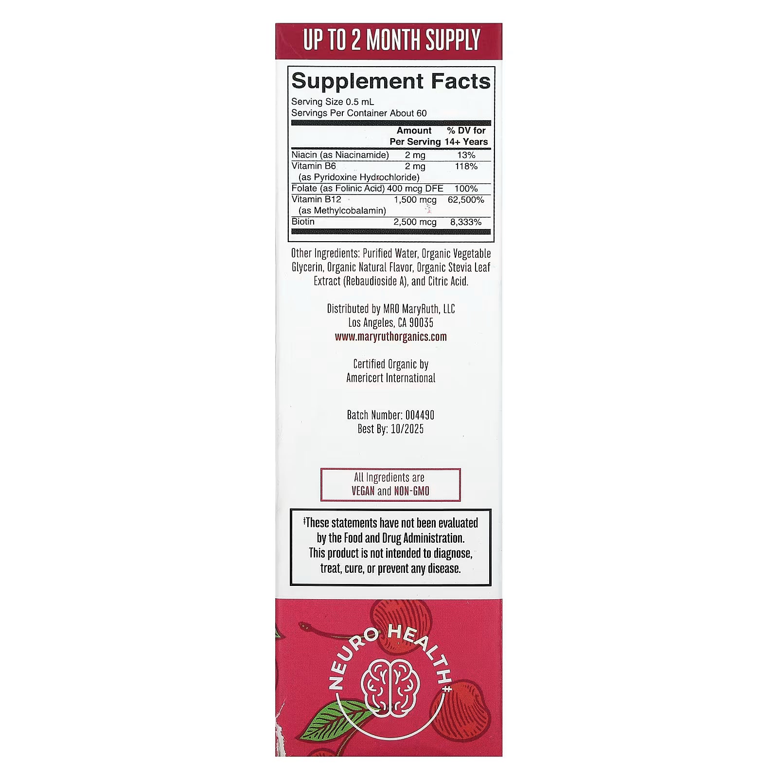 Complejo Vitamina B de Mary Ruth's 0.5ml por porción | Apoyo de la función Metabólica Integral | Gotero de 30ml Sabor Cereza - 30 servicios