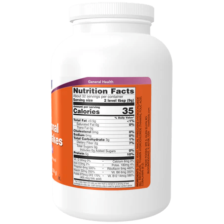 Nutritional Yeast Flakes de NOW son copos nutritivos de levadura inactiva fortificados con vitaminas del grupo B, ideales para complementar la alimentación diaria con proteínas vegetales y nutrientes esenciales. Aportan sabor y beneficios sin lácteos, libres de gluten y aptos para veganos.