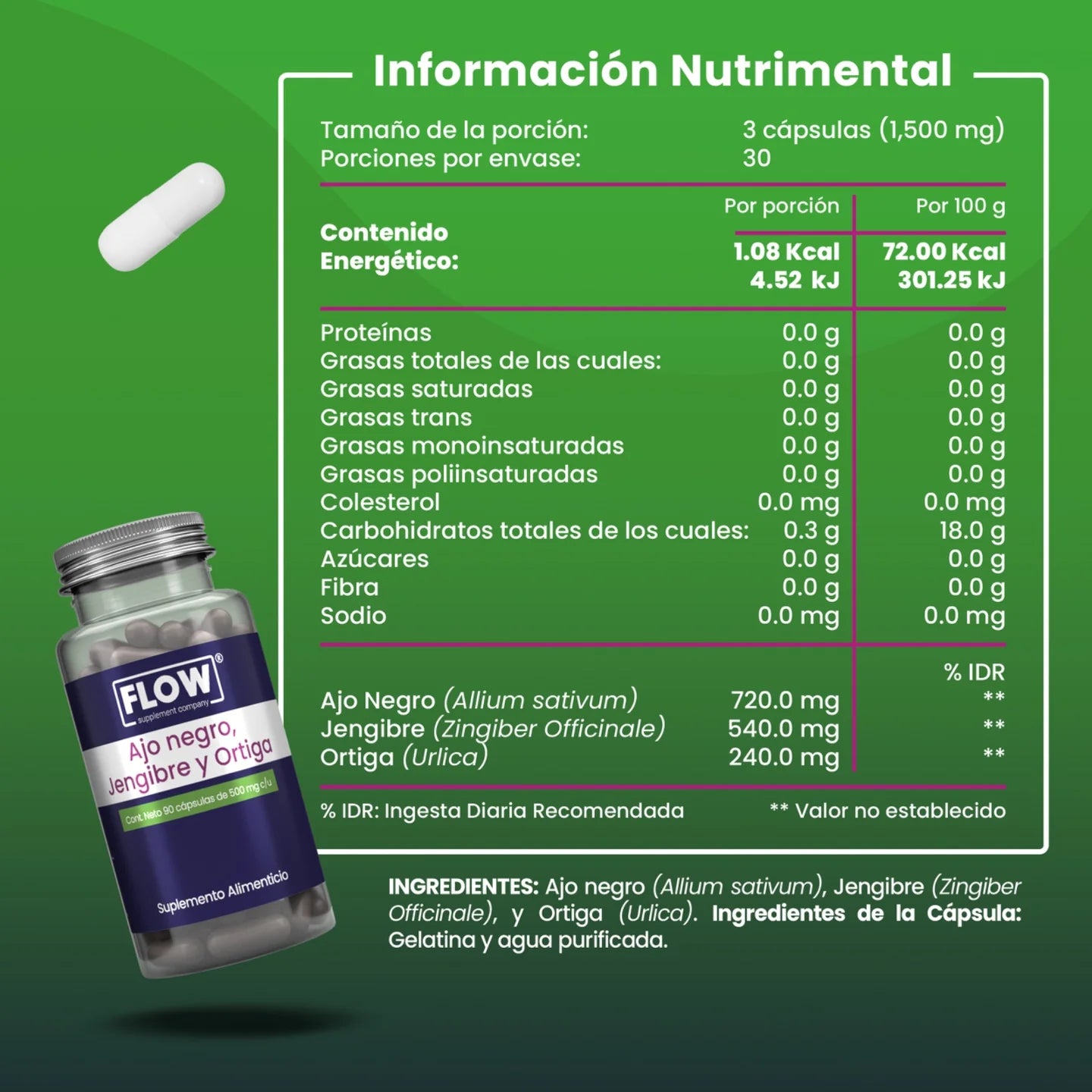 ¿Qué es Ajo negro Jengibre y Ortiga Flow?