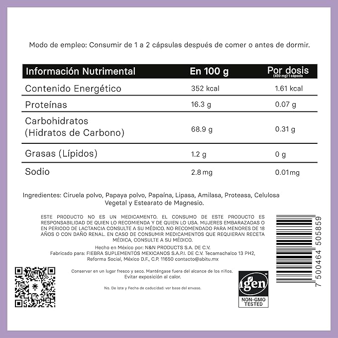 Complementa una alimentación rica en fibra con suplementos que promueven el bienestar digestivo de forma natural. Producto elaborado en México bajo estándares de calidad.