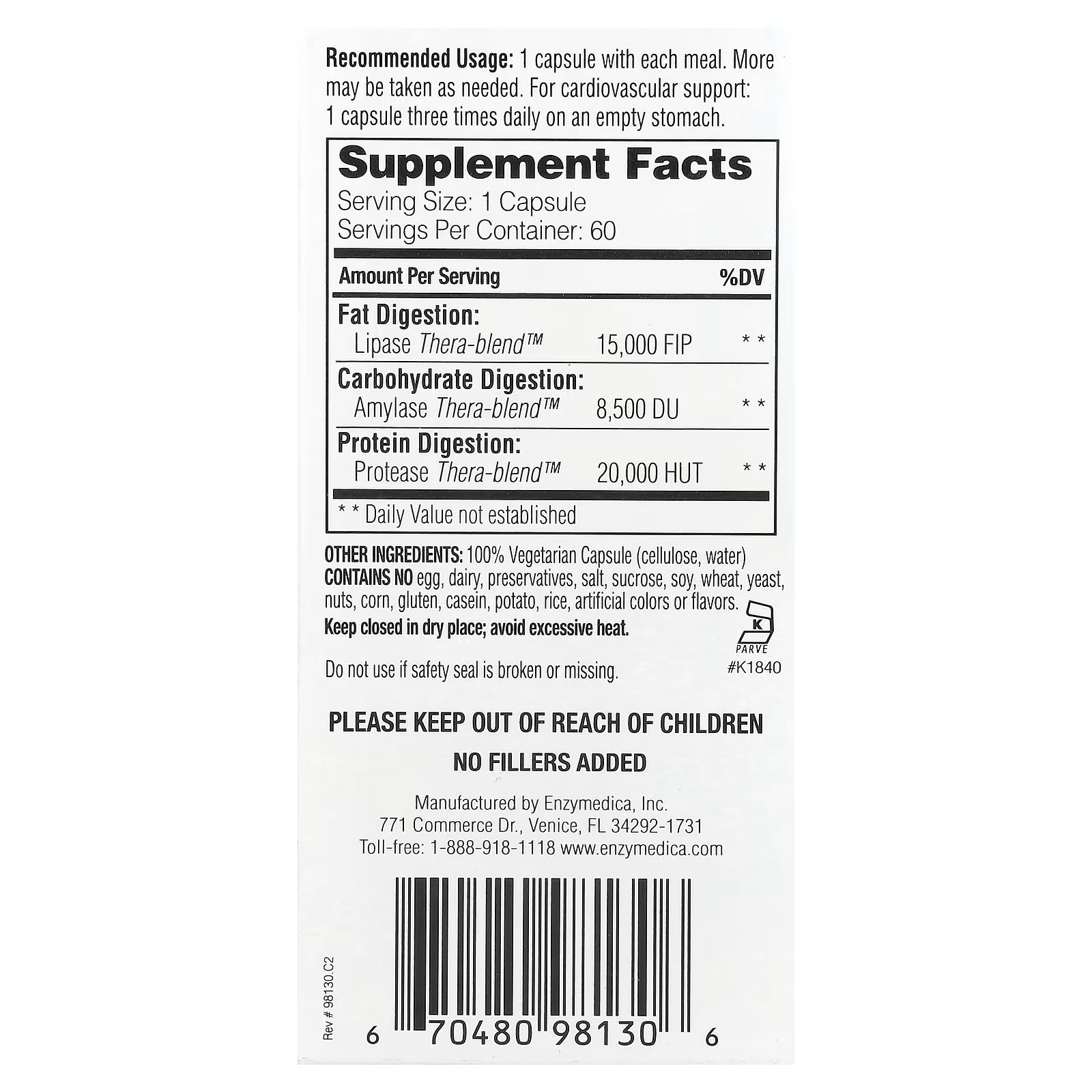 Enzimas Digestivas Lypo Gold de Enzymedica con Lipasa de Alta Potencia para Digestión de Grasas y Apoyo Cardiovascular | 60 Cápsulas Veganas y Kosher