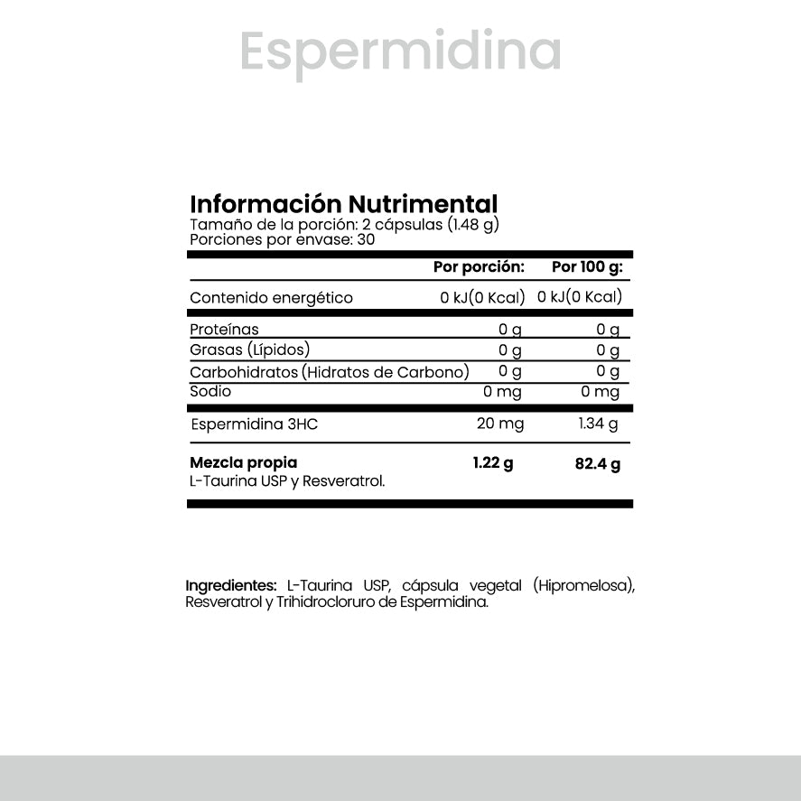 | Espermidina de CellX |Espermidina, Resveratrol y Taurina 60 Cápsulas