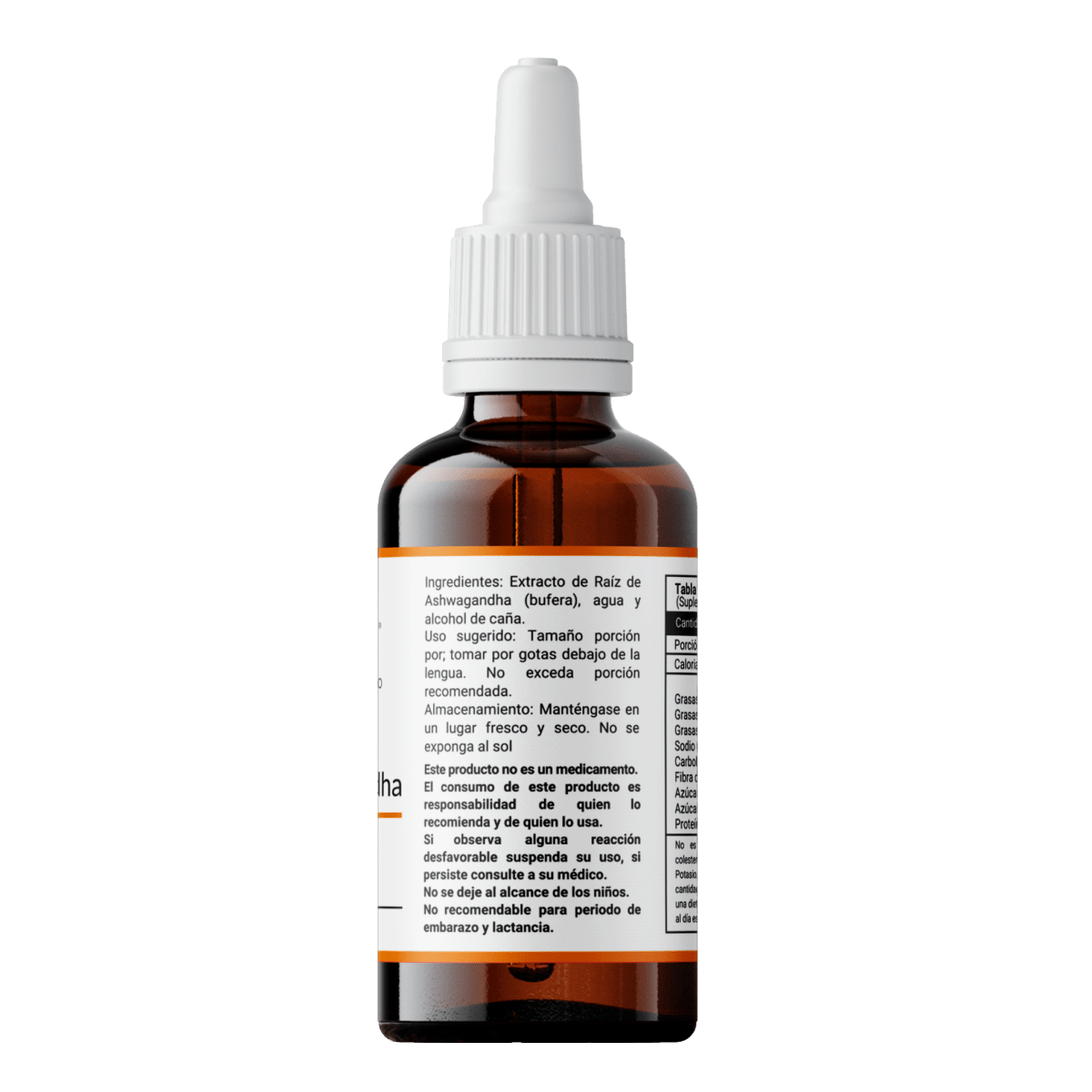 Su fórmula líquida combina extracto de raíz de Ashwagandha con agua y alcohol de caña como vehículos naturales. Ideal para quienes buscan un adaptógeno líquido de consumo sublingual.