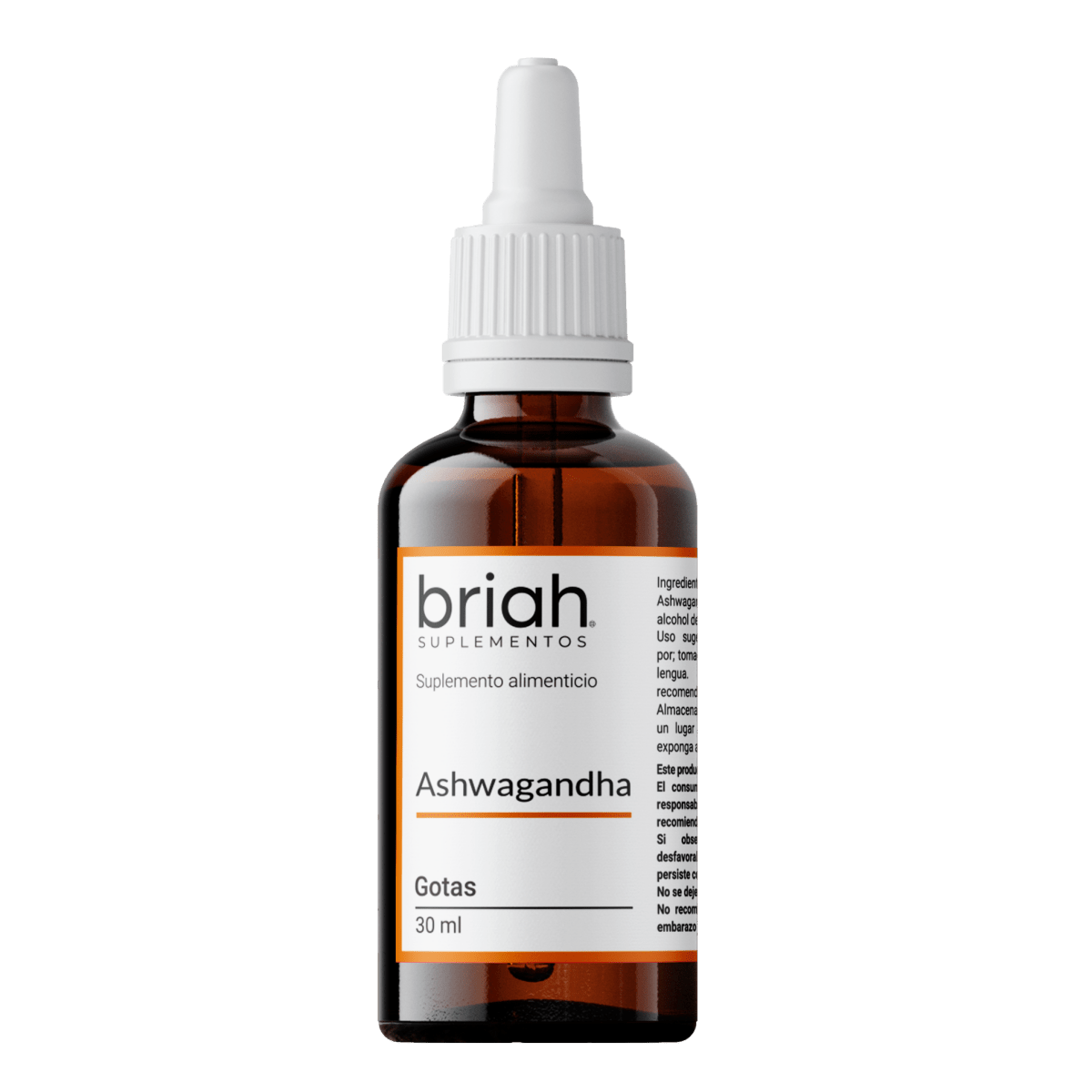 El extracto de Ashwagandha en gotas de Briah es un suplemento natural a base de la raíz de Withania somnifera, diseñado para apoyar el bienestar general, la vitalidad y el equilibrio. Presentación en frasco de 30 ml con gotero, práctico y de fácil absorción.