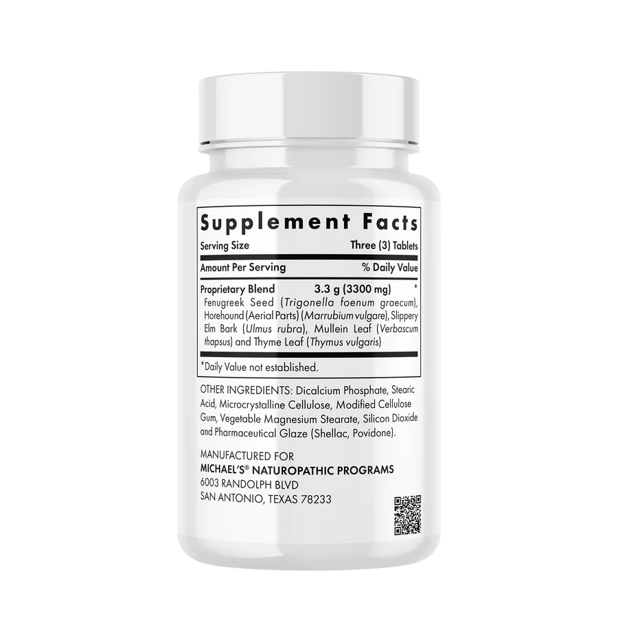 Fenogreco, corteza de olmo resbaladizo, hoja de gordolobo 3300mg de Michael's Health | Diseñadas para ofrecer apoyo integral al bienestar respiratorio y digestivo | 60 masticables vegetarianos