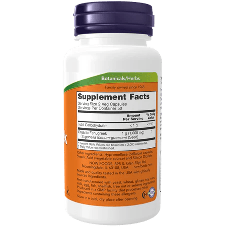 Frenogreco Orgánico de Now | Apoyo Digestivo | 100 Cápsulas