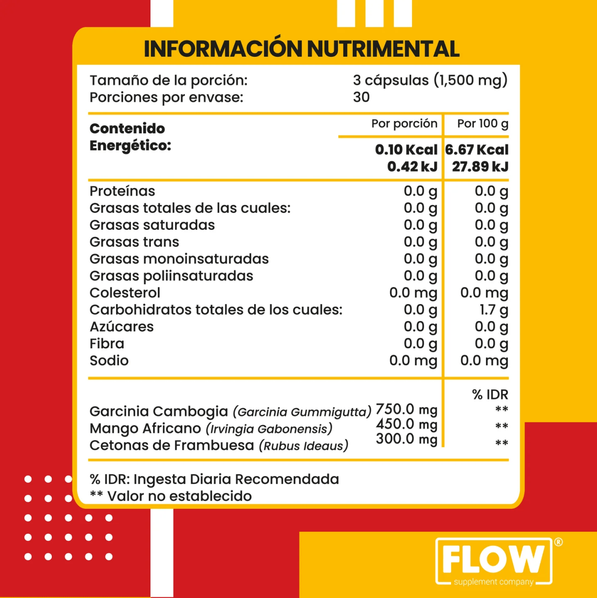 Garcinia Cambogia + Mango africano + Cetonas de frambuesa 1500mg por porción META de Flow Supplements | Fórmula pensada para complementar estilos de vida activos | 90 cápsulas vegetales