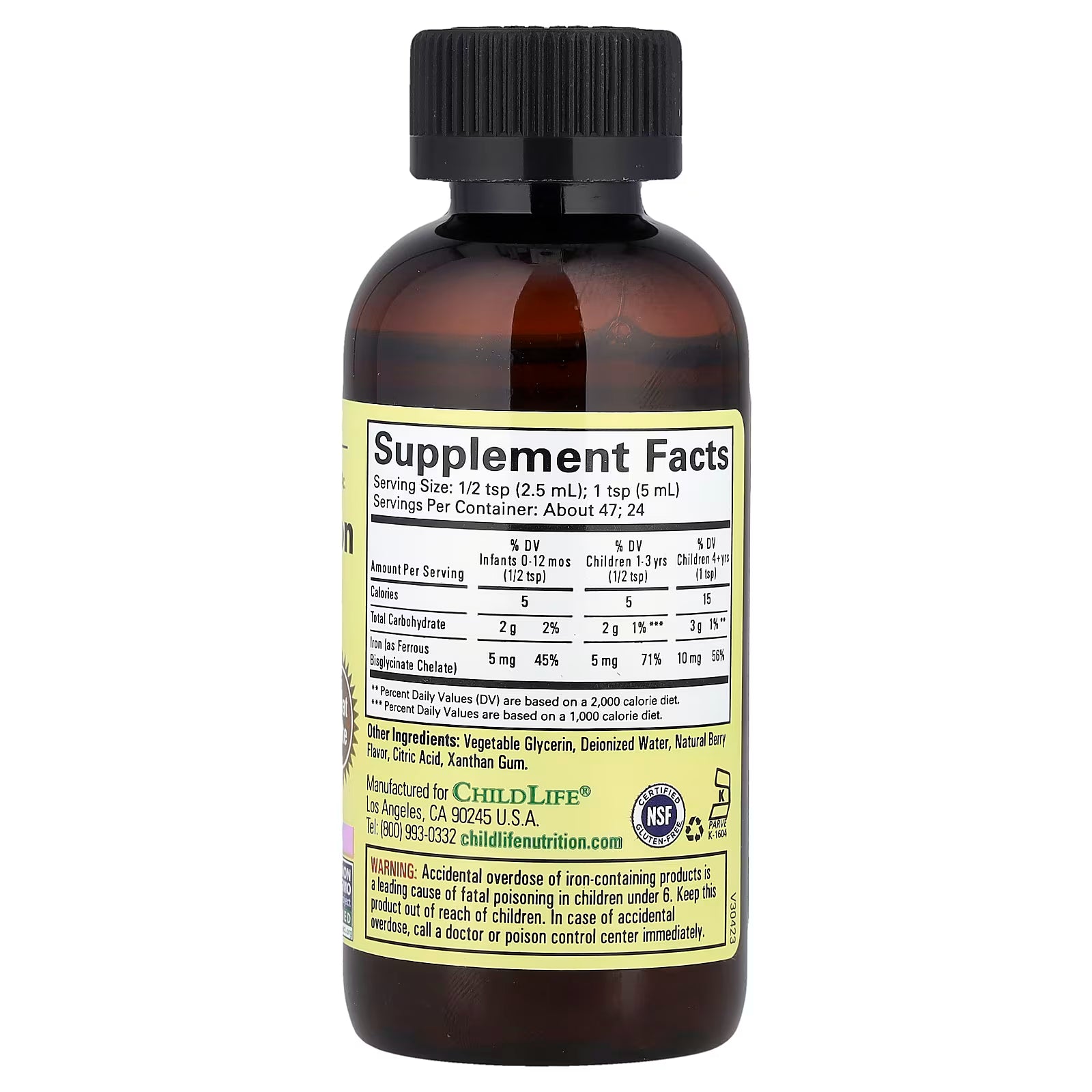 Hierro Líquido para niños de Child Life | Impulsa la formación de glóbulos rojos y el transporte de oxígeno - Energía | 118 ml sabor a bayas naturales