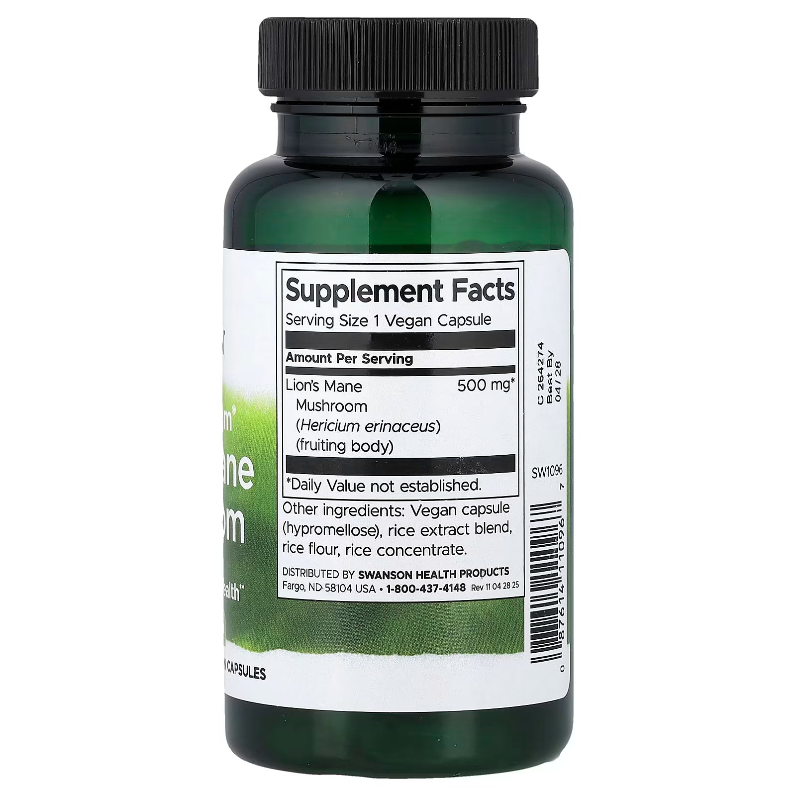 Hongo Melena de León 500 mg de Swanson | Promueve la función cognitiva, la concentración y la memoria | 60 cápsulas vegetales