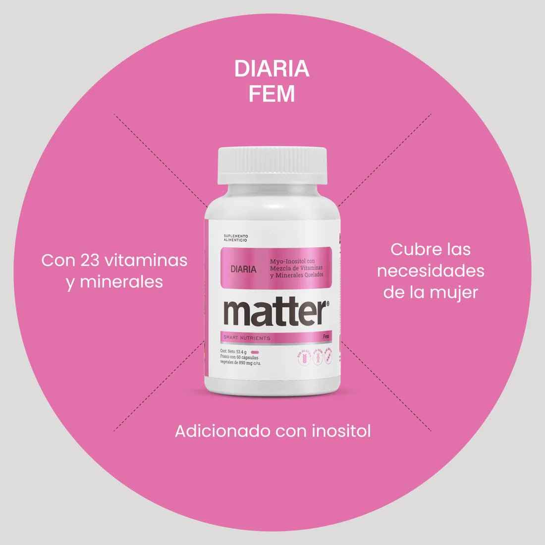 Inositol, Vitaminas y Minerales Diaria Matter Fem 890 mg | Bienestar Femenino Diario | 60 Cápsulas vegetales