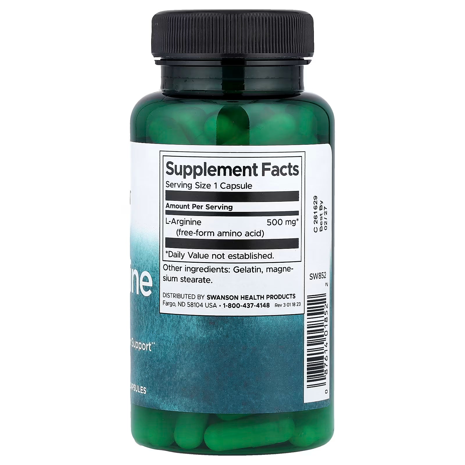 L-Arginina 500 mg de Swanson | Apoyo Cardiovascular y del Sistema Inmunológico | 100 cápsulas vegetales