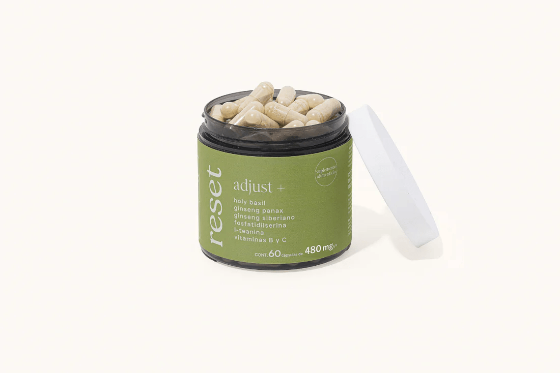 L-Teanina y Ginseng, Adjust+ de Reset | Apoya el manejo del estrés y la calma mental | 60 cápsulas
