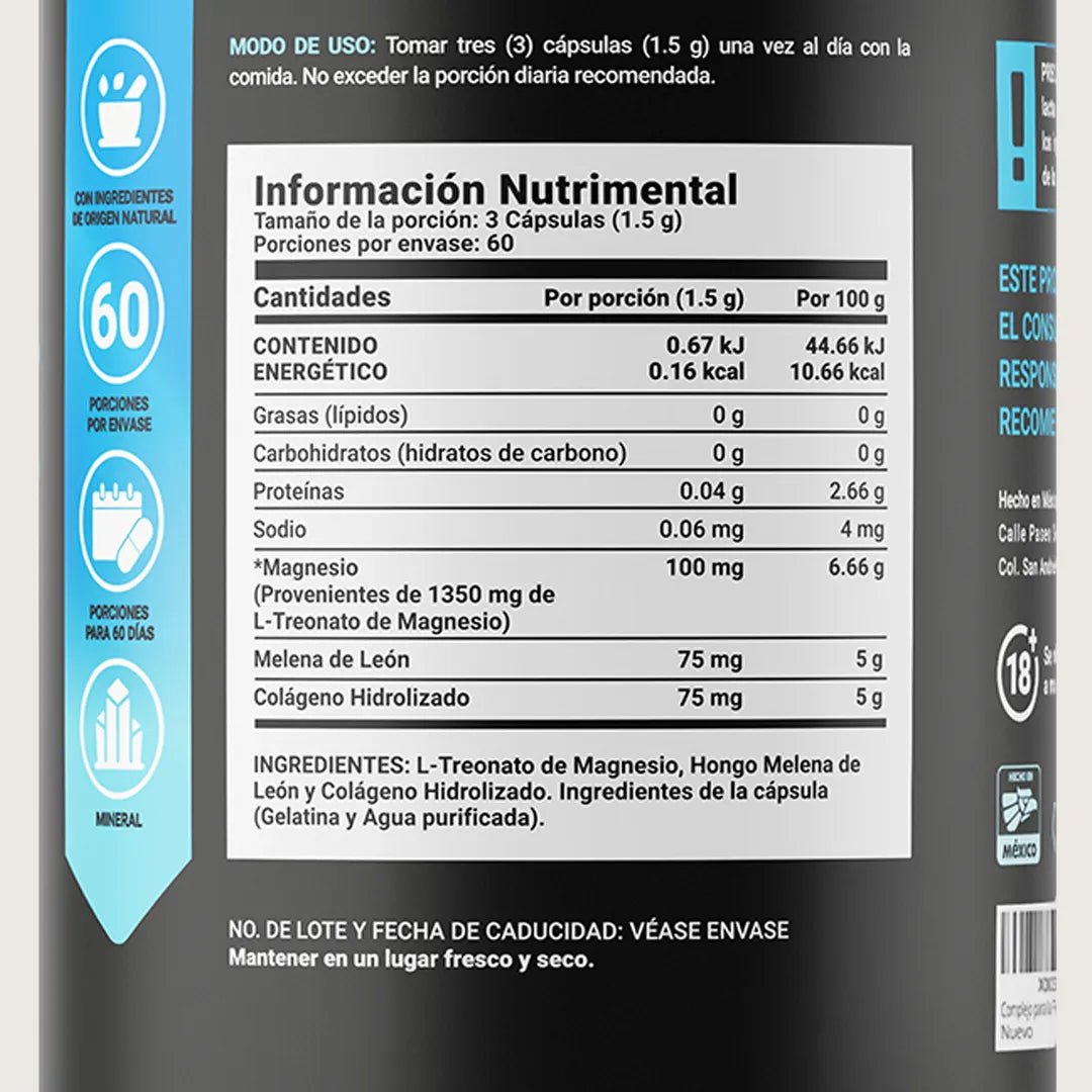 L-Treonato de Magnesio, Melena de León y Colágeno Hidrolizado Threonate Mag de B-Life | 180 Cápsulas