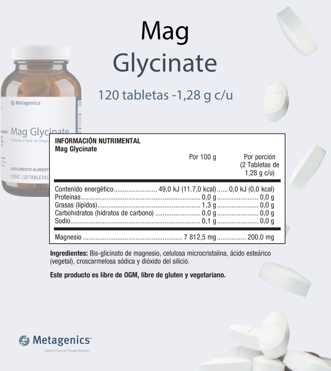 Mag Glycinate | Metagenics | Magnesio Bisglicinato | Sistema nervioso y muscular | 120 Tabletas