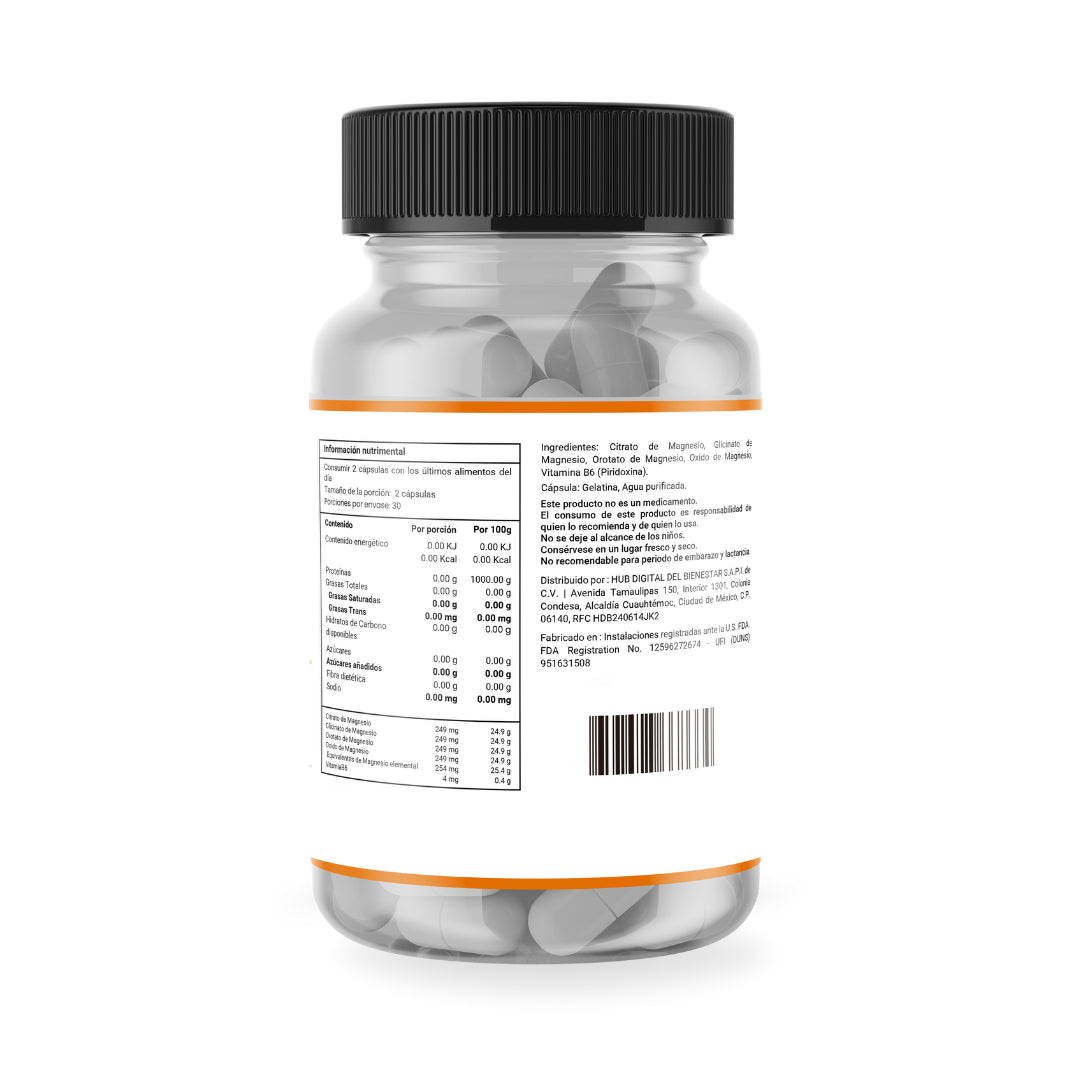 Magnesio Súper Complex | 4 tipos de Magnesio + Vitamina b6 | 60 Cápsulas