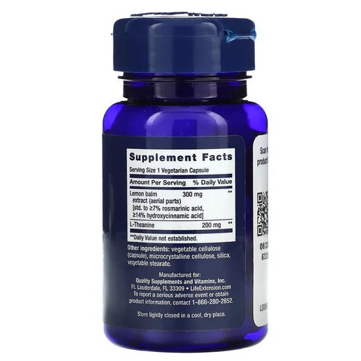 Melissa Oficinalis y L-Teanina 300 mg de Life Extension | Contribuye en el alivio del estrés y la ansiedad | 30 Cápsulas Vegetarianas de Liberación Rápida