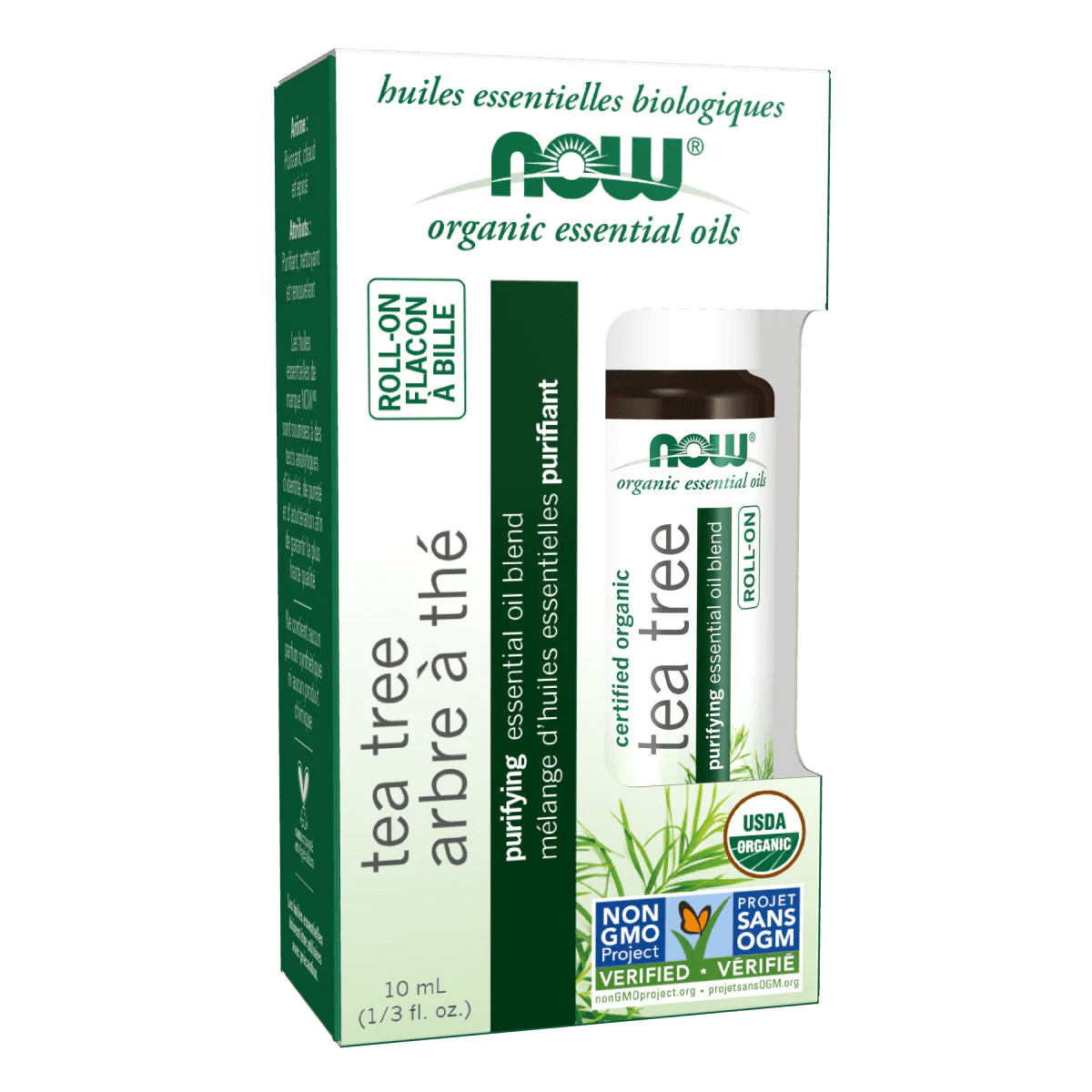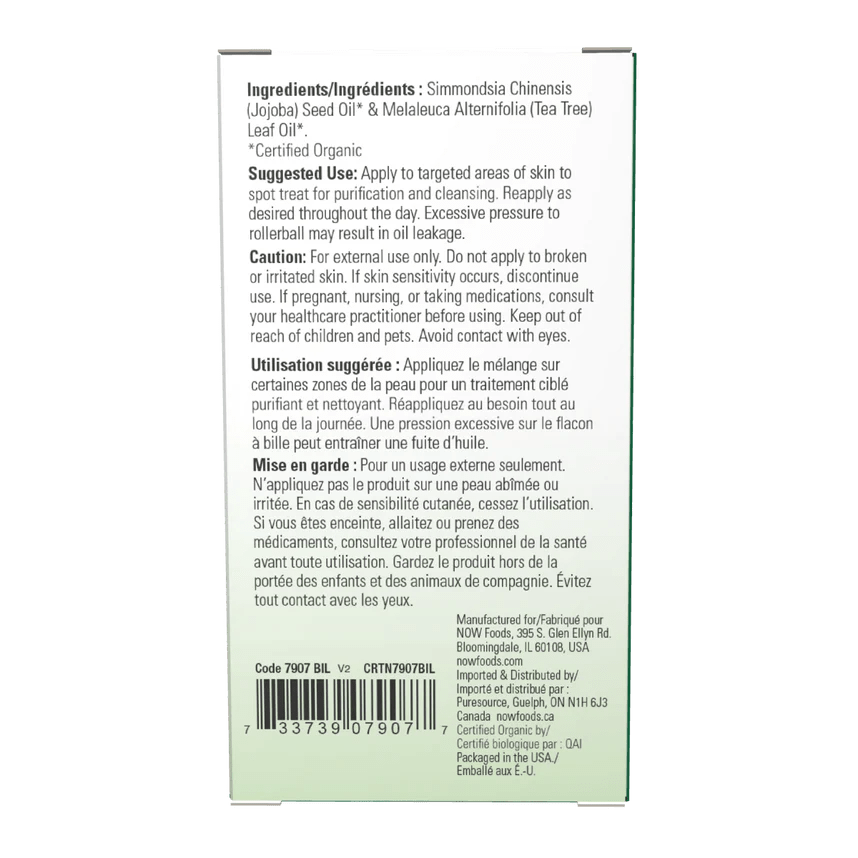 El Tea Tree Roll-On de NOW Organic Essential Oils es una mezcla de aceites esenciales orgánicos certificados que combina aceite de árbol de té con aceite de jojoba. Su formato portátil en roll-on permite una aplicación directa y cómoda sobre áreas específicas de la piel, aportando un efecto purificante y refrescante.
