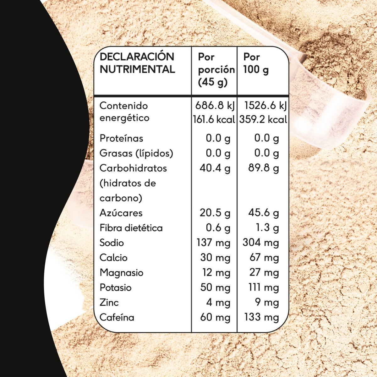 | Carbohidratos (dextrosa, fructosa, maltodextrina) | 60 g | - |