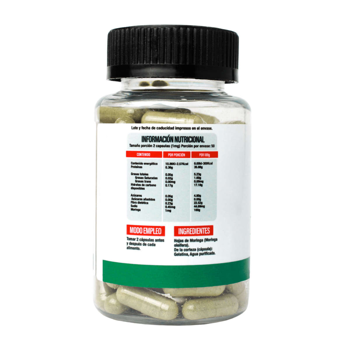 La moringa es un superfood natural rico en fitonutrientes que contribuyen al bienestar general y a la energía diaria. Esta fórmula de Superlabs aporta 500 mg por cápsula y utiliza hojas de Moringa oleifera cuidadosamente deshidratadas para mantener su perfil nutricional. Su formato en cápsulas facilita su consumo e integración a rutinas de alimentación equilibrada.