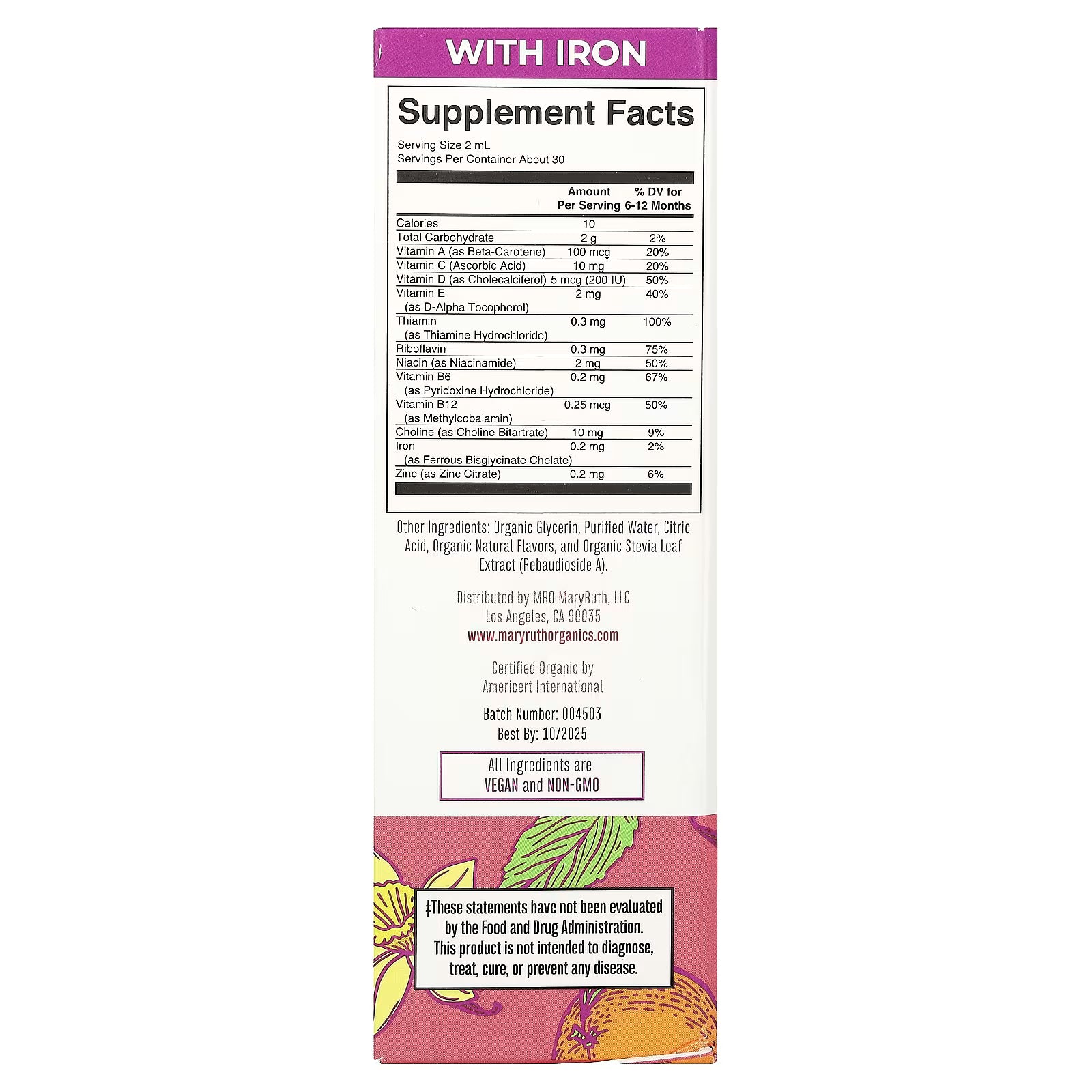 Multivitamínico Infantil + Hierro + Zinc de Mary Ruth's | Fortalece el Sistema Inmunológico | Gotero de 60ml Sabor Naranja - Vainilla