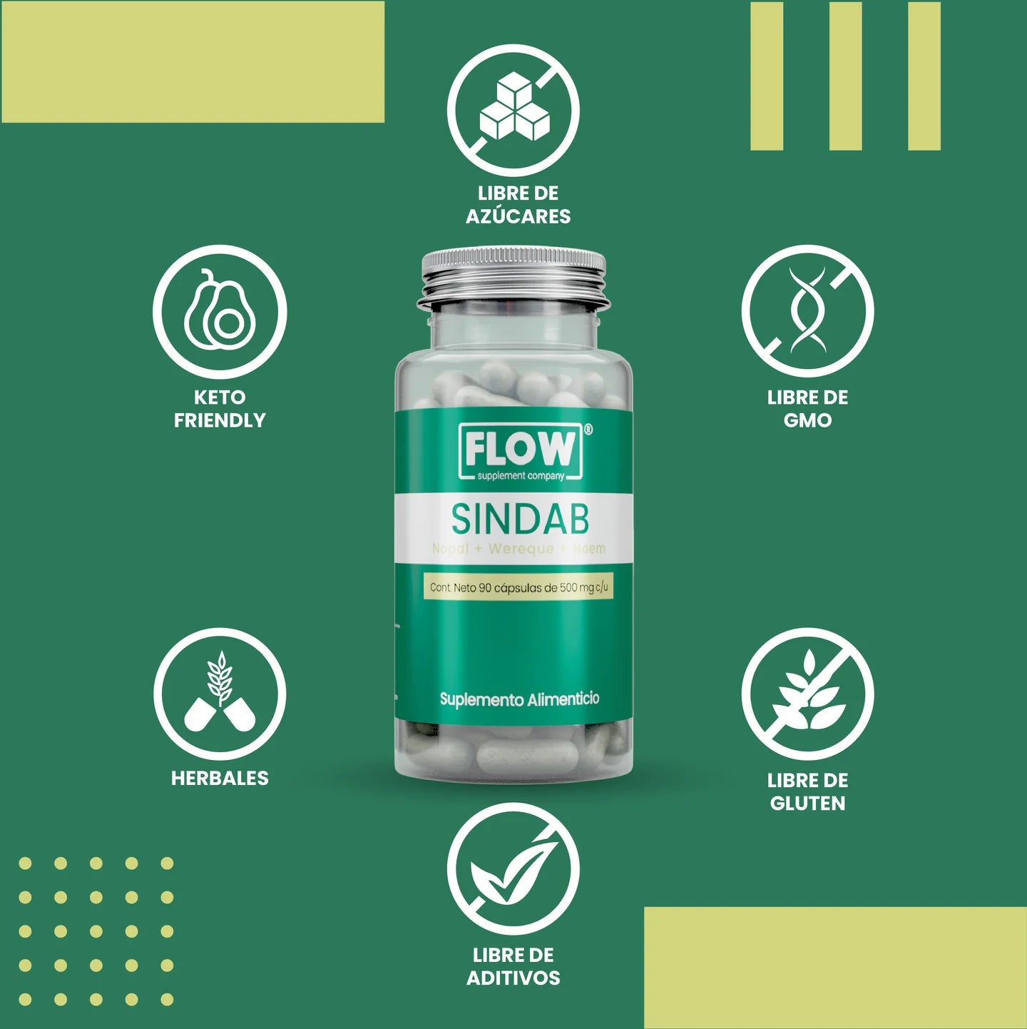 Sindab es un suplemento elaborado por Flow que integra una combinación única de extractos herbales tradicionales como nopal, neem y wereque. Estos ingredientes son reconocidos en la medicina herbolaria por su potencial para apoyar procesos metabólicos, especialmente relacionados con la glucosa.