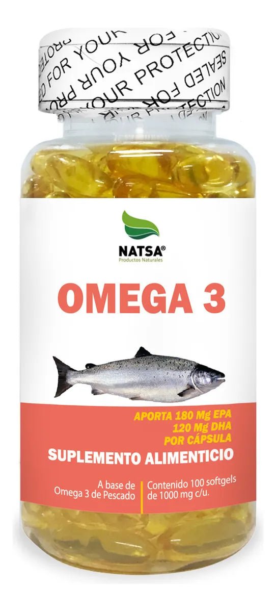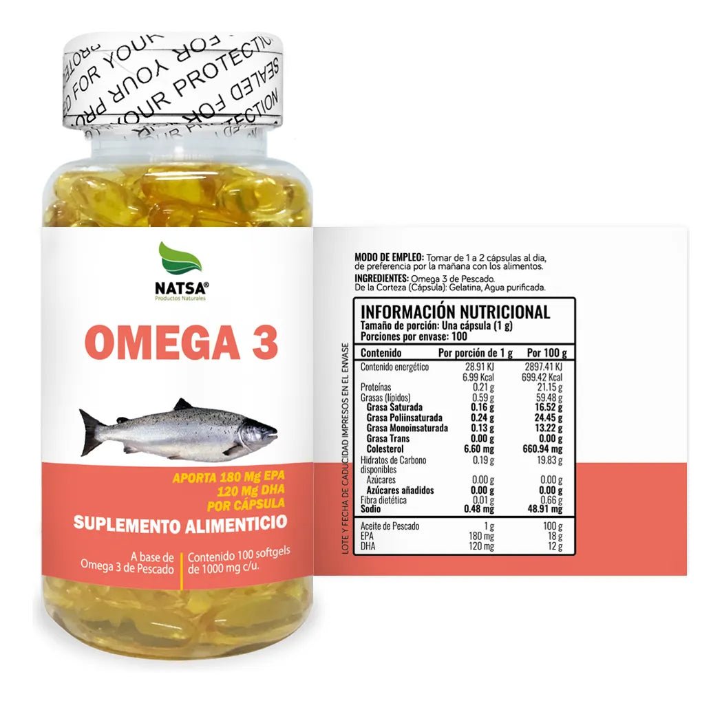 Omega 3 de pescado 1000 mg Natsa | Favorece el funcionamiento cardiovascular | 100 cápsulas blandas