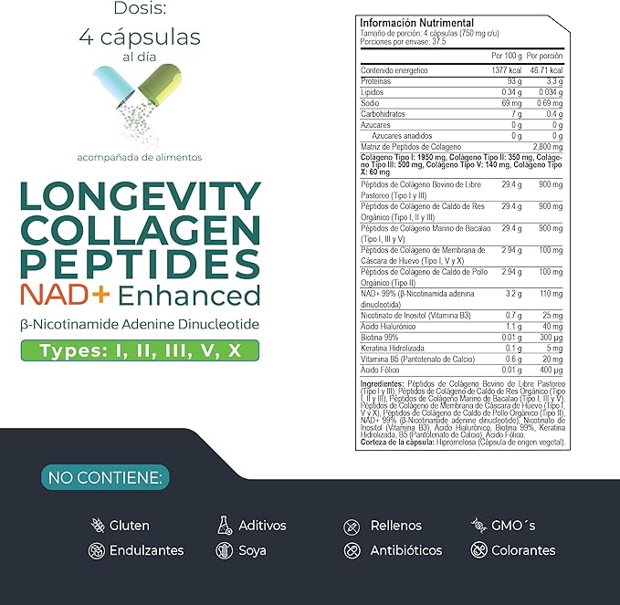 No recomendado para menores y personas alérgicas a proteínas de origen animal. Consulte a un profesional de la salud antes de usar en embarazo, lactancia o condiciones médicas específicas. Mantener fuera del alcance de los niños y conservar en un lugar fresco y seco.