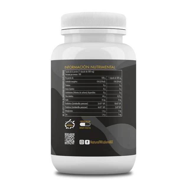 Prebióticos, Probióticos & Postbióticos 500mg de Natural Wisdom | Promueve el equilibrio de la microbiota, mejorando la digestión y apoya el sistema inmunológico | 180 Cápsulas Vegetales
