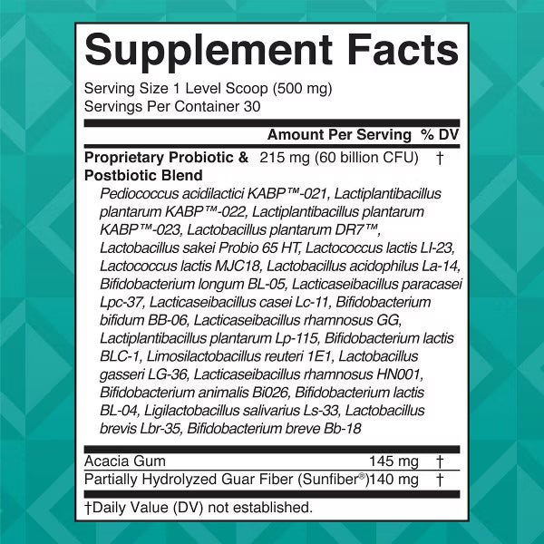 Daily 3-in-1 es un suplemento digestivo avanzado con una mezcla sinérgica de probióticos, prebióticos y postbióticos. Cada porción entrega 60 mil millones de UFC de 23 cepas distintas para apoyar el equilibrio intestinal y la salud digestiva diaria.