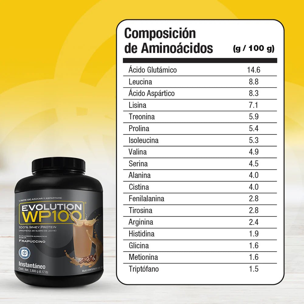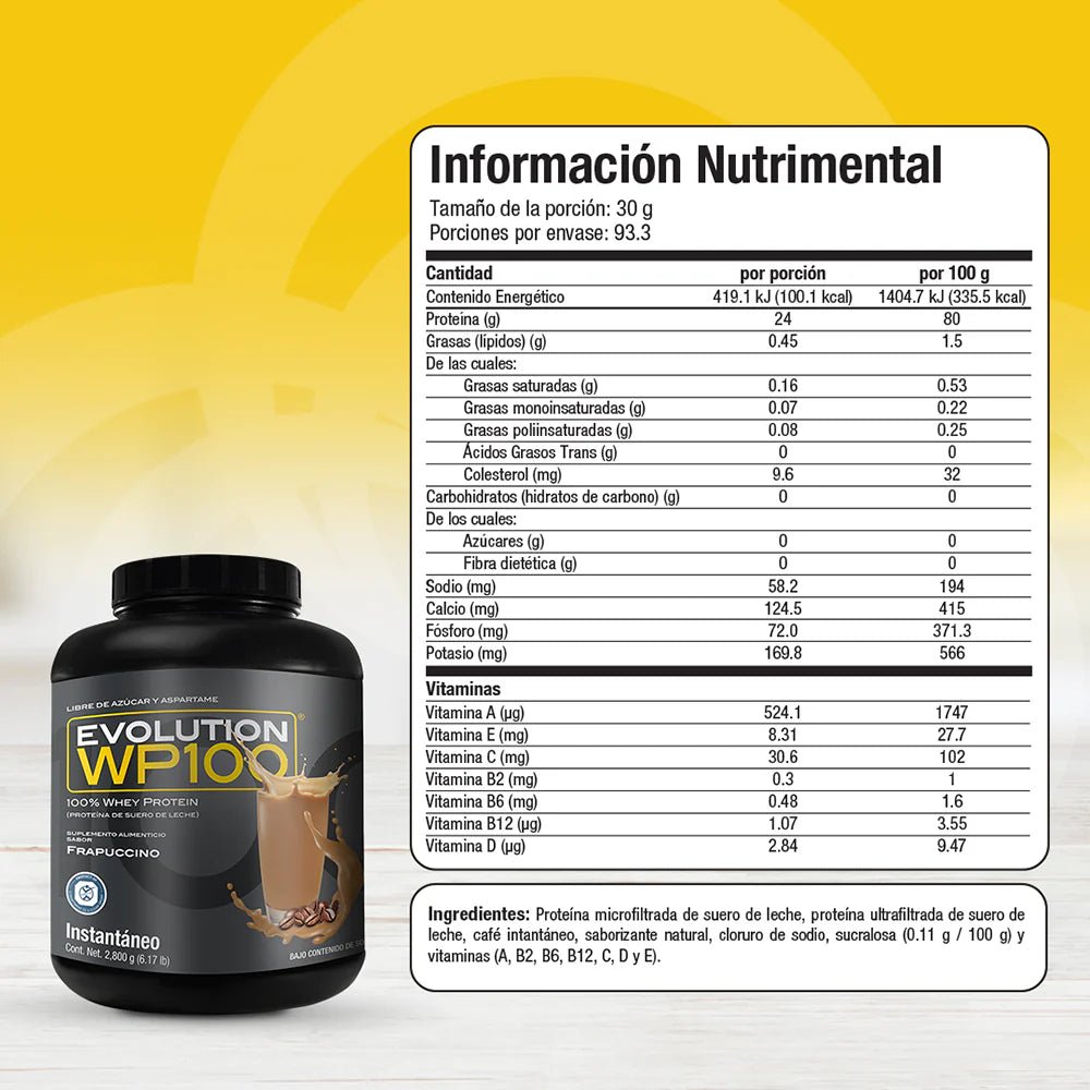Proteína de Suero de Leche (Whey) Instantánea Sabor Chocolate u otros sabores 32.8g de Evolution WP100 | 1.4kg o 2.8kg, 42 y 85 porciones