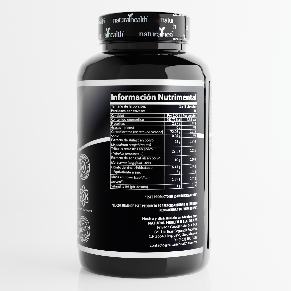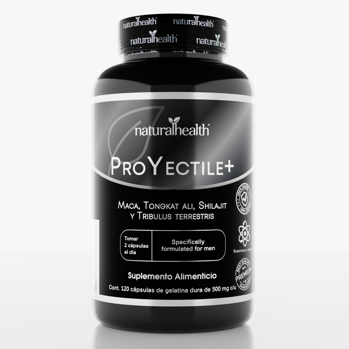 Proyectile 500mg de Natural Health | Maca, Shilajit y Tribulus Terrestris para Energía y Vitalidad Masculina | 120 cápsulas