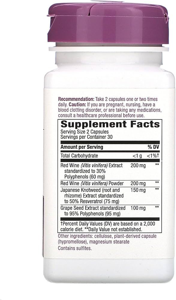 El suplemento Resveratrol Premium Blend de Nature’s Way es una mezcla de ingredientes antioxidantes como extracto de vino tinto, polvo de vino tinto, raíz de knotweed japonés y semilla de uva. Estos componentes ayudan a neutralizar radicales libres y a apoyar la salud celular y vascular.