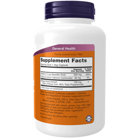 El Extracto de semilla de uva de NOW Foods es un suplemento estandarizado al 90% en polifenoles, potentes antioxidantes que favorecen la salud celular, vascular e inmune.