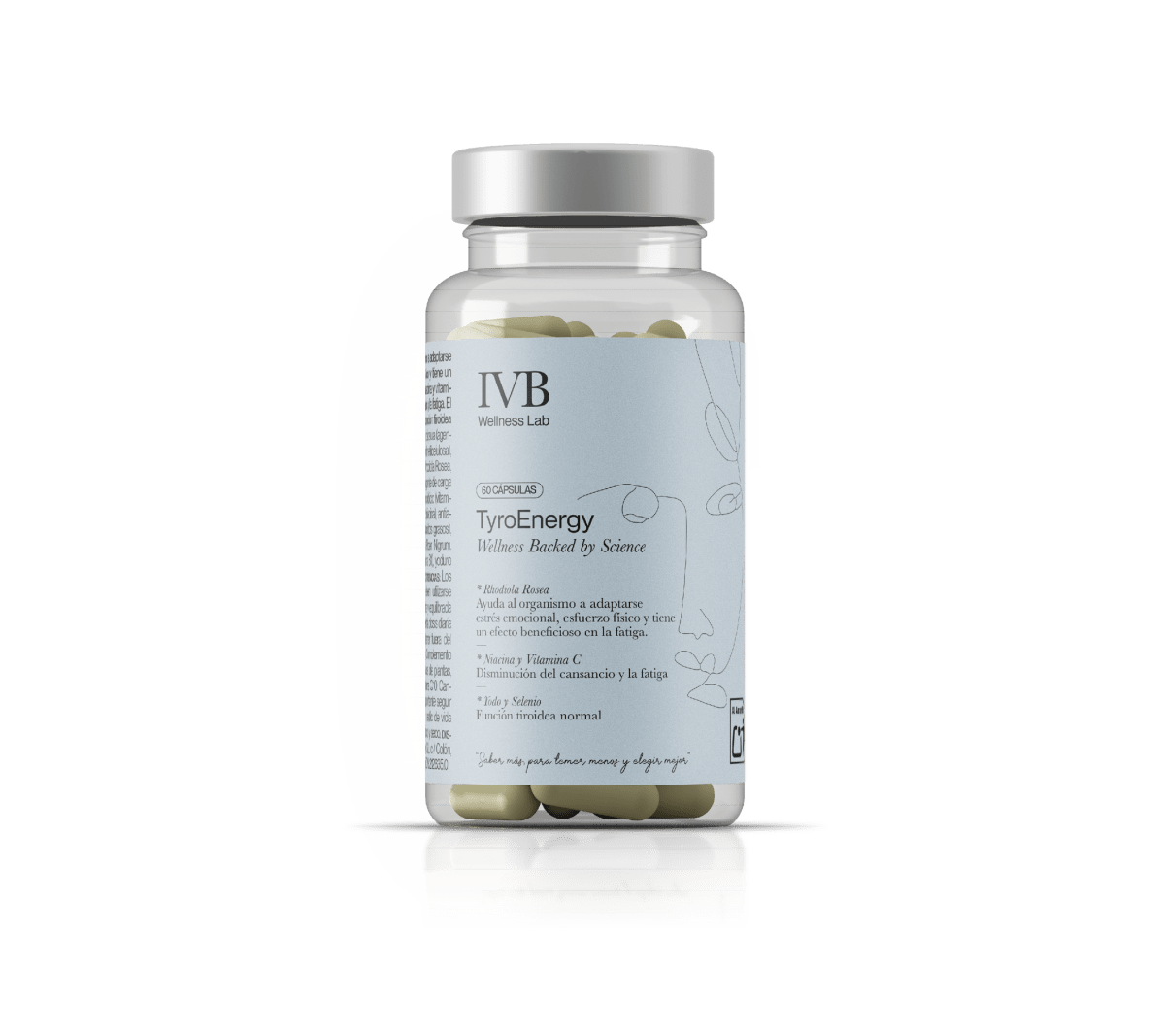 TyroEnergy es un suplemento formulado por IVB Wellness Lab con una combinación de adaptógenos, vitaminas y minerales que apoyan la función tiroidea, la producción de energía y la adaptación al estrés. Su contenido de Rhodiola Rosea, Myo-Inositol, coenzima Q10 y vitaminas del grupo B lo convierten en un aliado completo para el bienestar físico y mental diario.