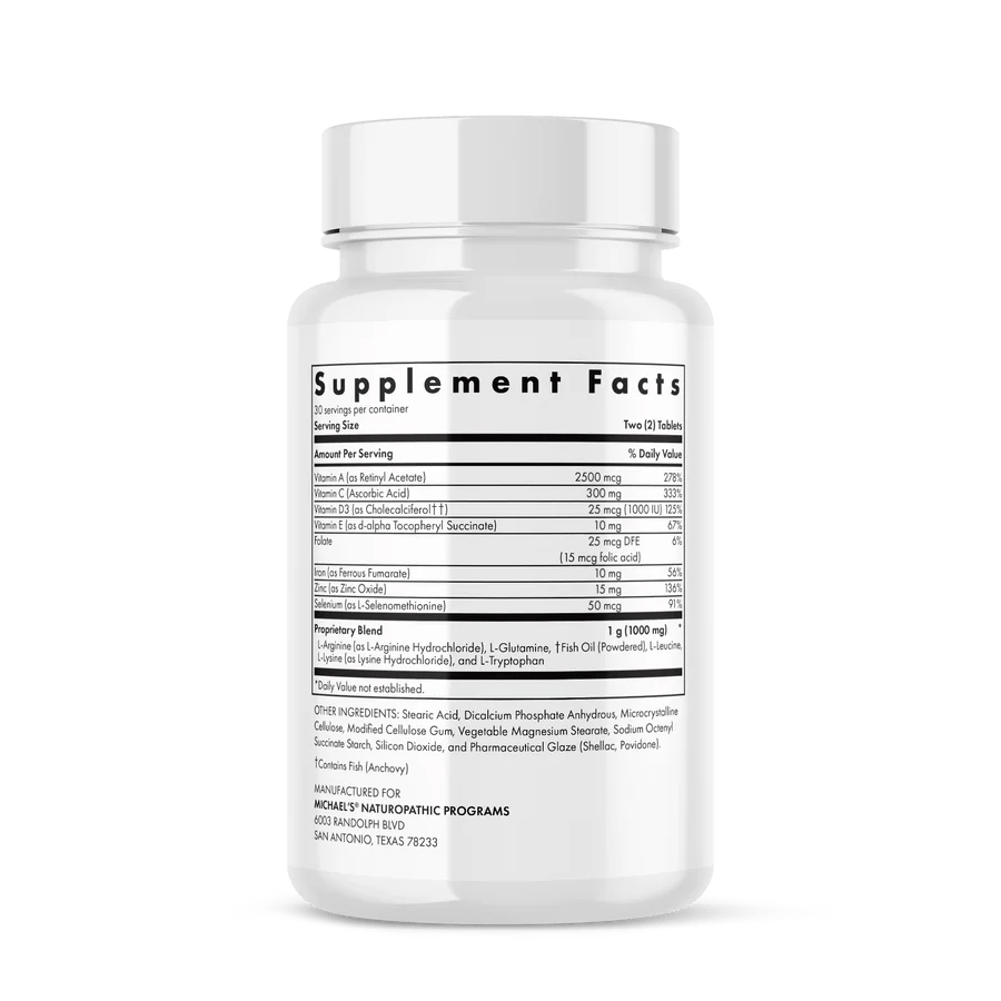 Essential Immune Nutrients es un suplemento multinutriente con vitaminas A, C, D3 y E, además de zinc, hierro y selenio, que fortalecen el sistema inmune, protegen las células y apoyan el bienestar general. Incluye una mezcla exclusiva de aminoácidos y aceite de pescado.