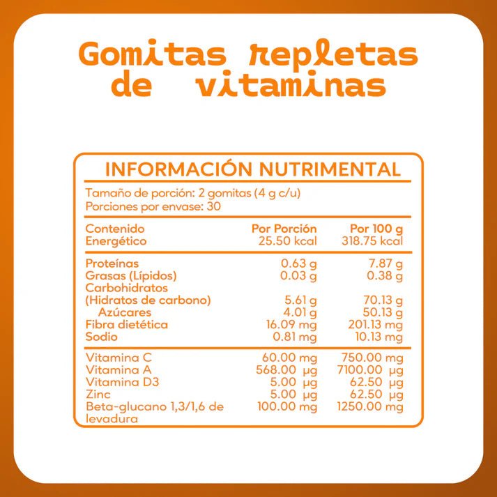Vitamina A, C, D, Betaglucanos y Zinc 4g Pro D-Fence de Súluu | Fortalece el Sistema Inmunológico, Ayudando en la Recuperación de los Resfriados | 240g en 60 gomitas Sabor Mandarina